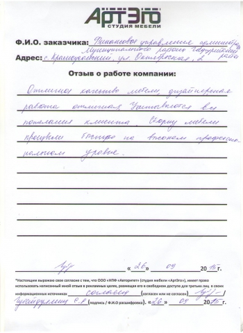 Отличное качество мебели, дизайнерская работа отличная. Учитываются все пожелания клиента. Сборку мебели произвели быстро на высоком професссиональном уровне.