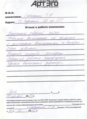 Грибакина Т.Н.. 30.10.15г, ул. С.Кувыкина, 29. Комплект корпусной мебели