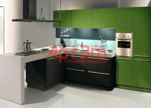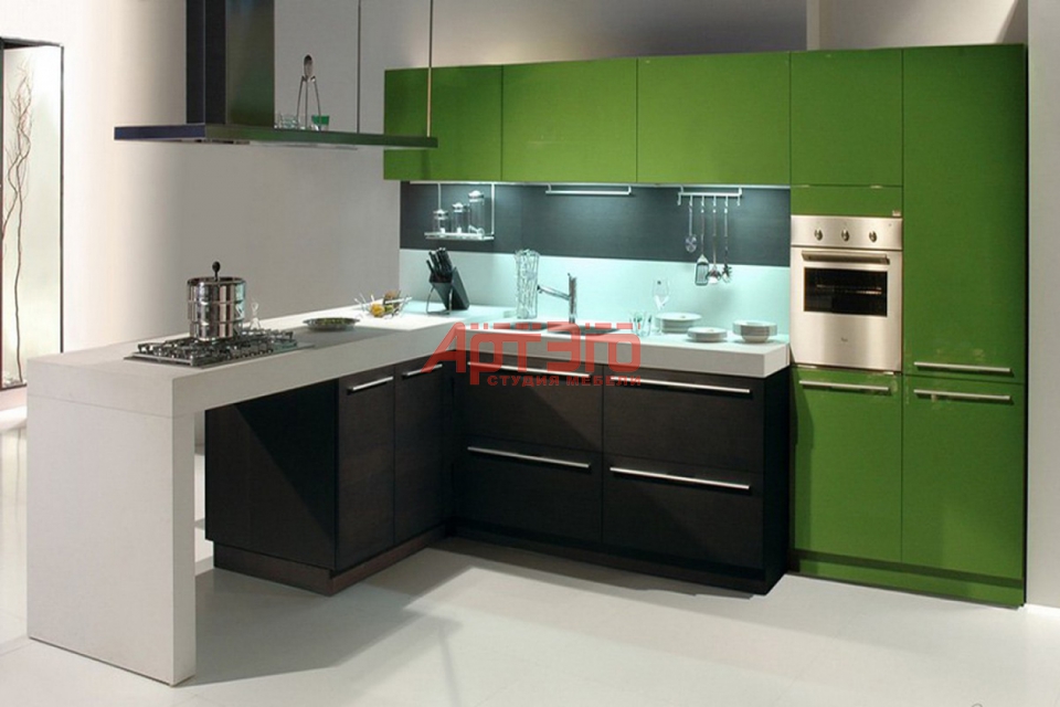 Фасады крашенные эмаль по каталогу RAL, Столешница листовой акриловый камень. Металлическая фурнитура BLUM.